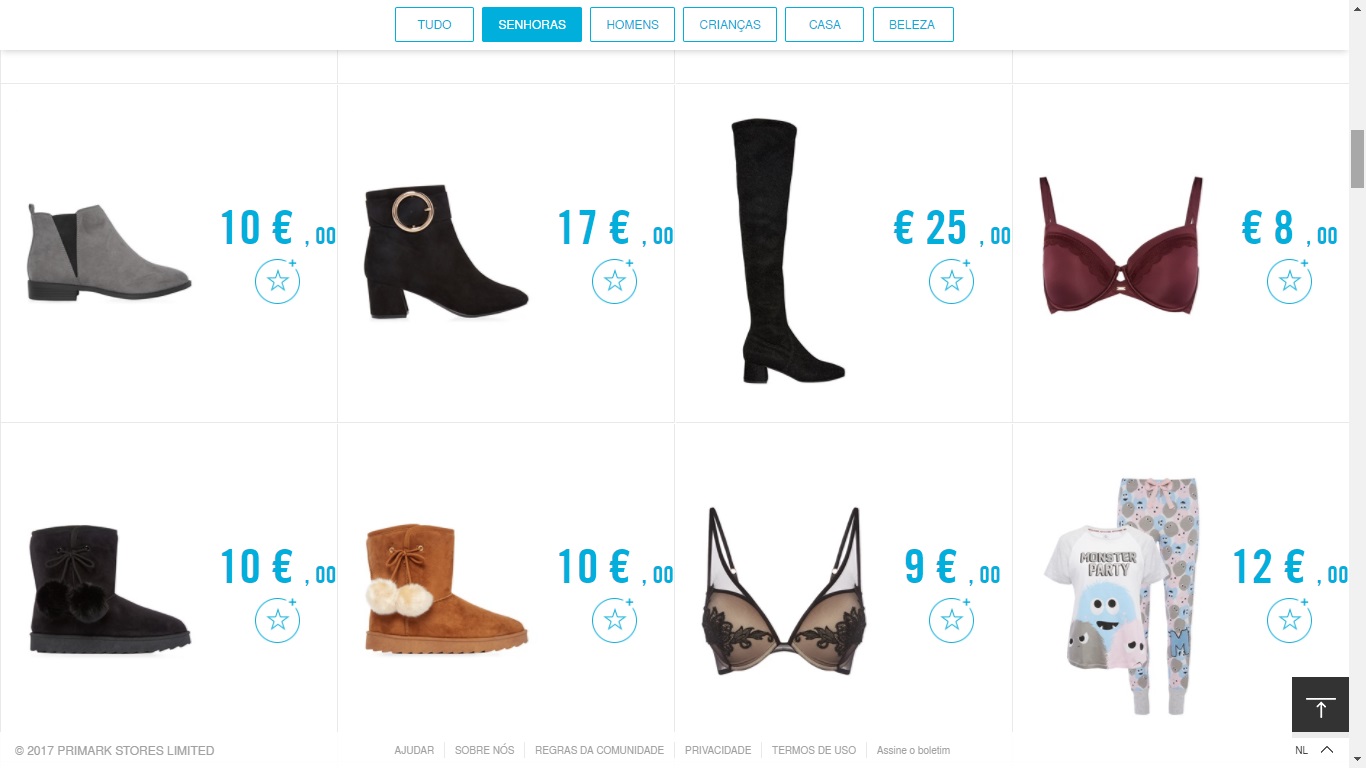 Espalhado pela Europa, pelo Reino Unido e pela Irlanda, está o Primark. Com 290 lojas, é uma loja que tem no seu DNA roupas baratas e de qualidade. No site da loja, é possível encontrar muitas sessões com valores inferiores a 10 euros! E nas lojas físicas não é diferente. Existem ofertas de tênis por apenas 1 euro. Camisas básicas por 2.50 euros. É um paraíso da pechincha.