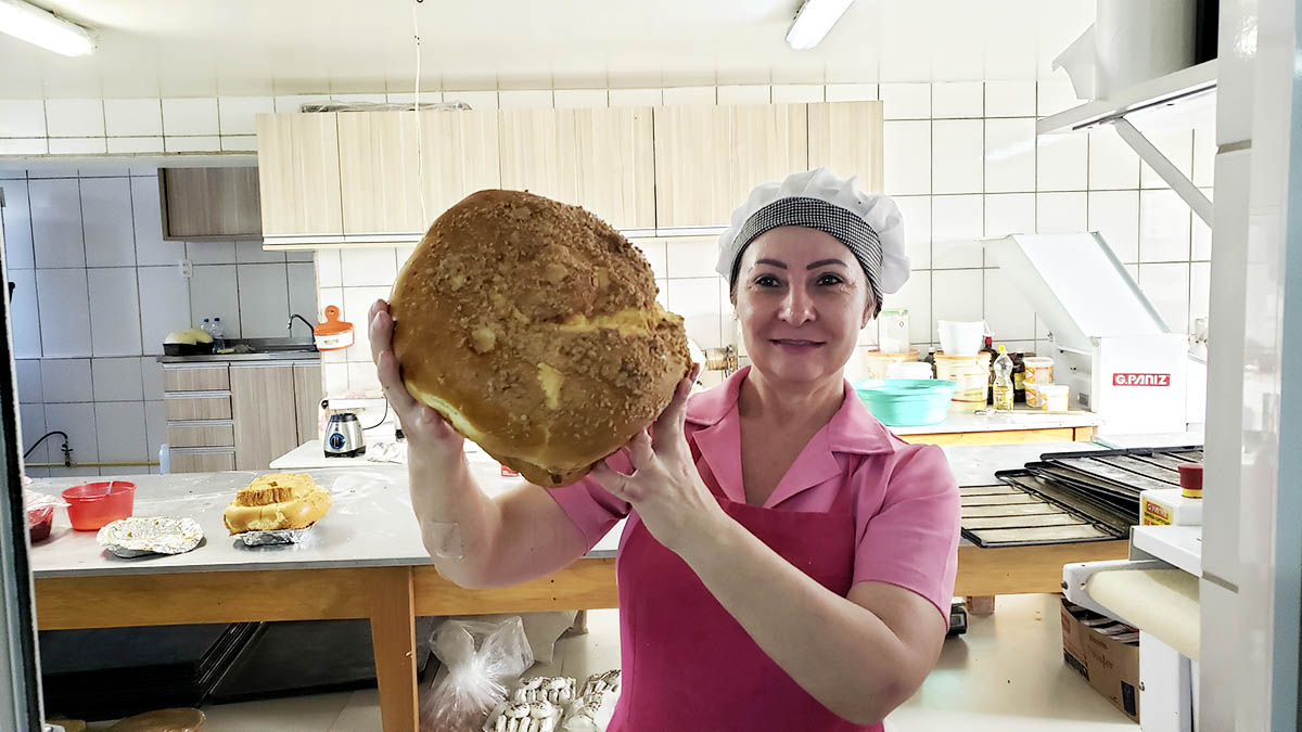 À distância pode parecer um lugar simples, mas com uma produção de cucas incrível. Uma dica? Chegar por volta de 16 horas de segunda a sábado é praticamente garantia de encontrar uma cuca fresquinha saindo do forno.